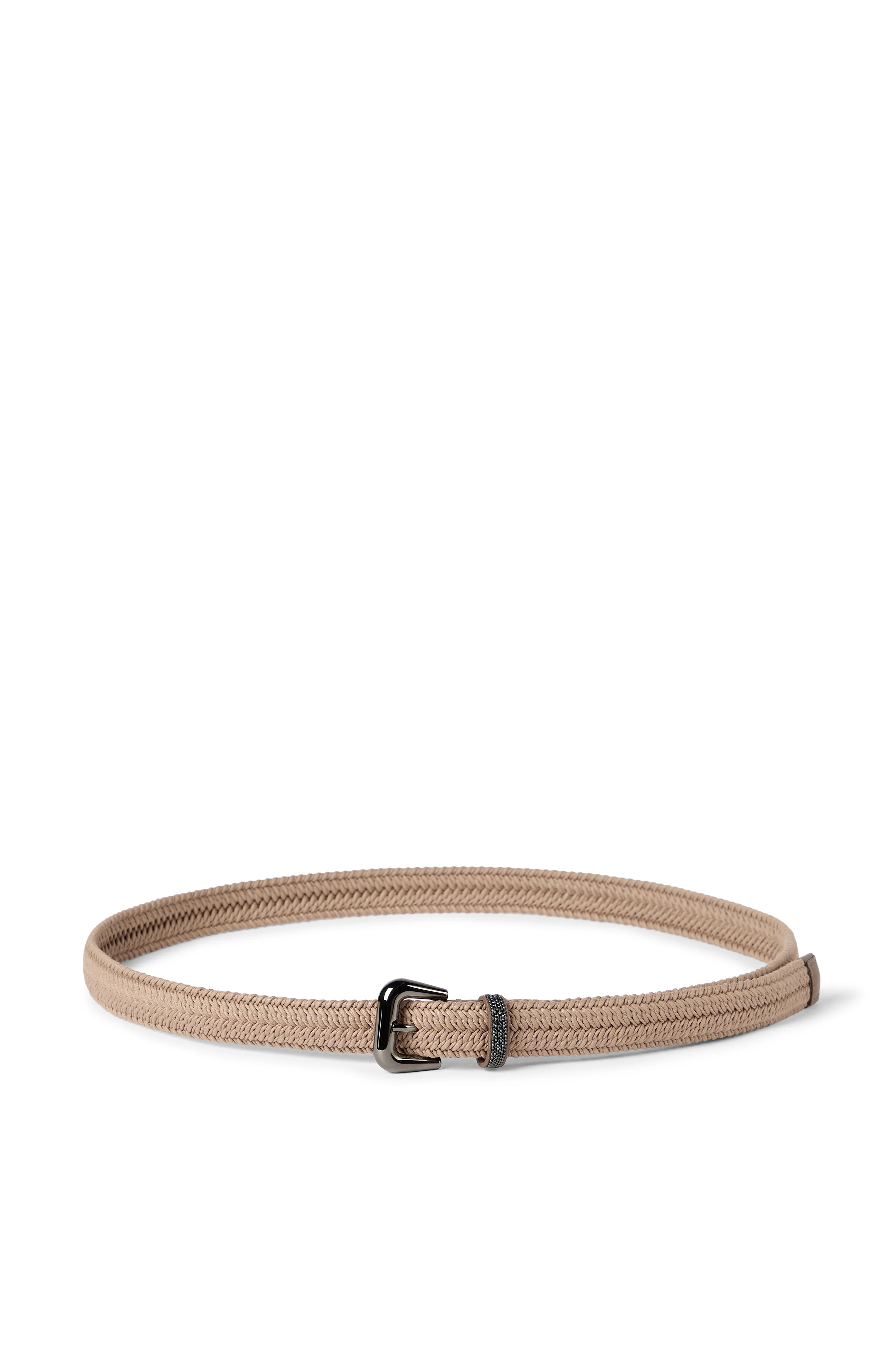 The cotton fiber creates the accessory’s woven effect. Leather details complete the belt’s aesthetic. Belt height approx. 2,5 cm (0.98\")All metal parts are Nickel-freeNickel-free monili decoration