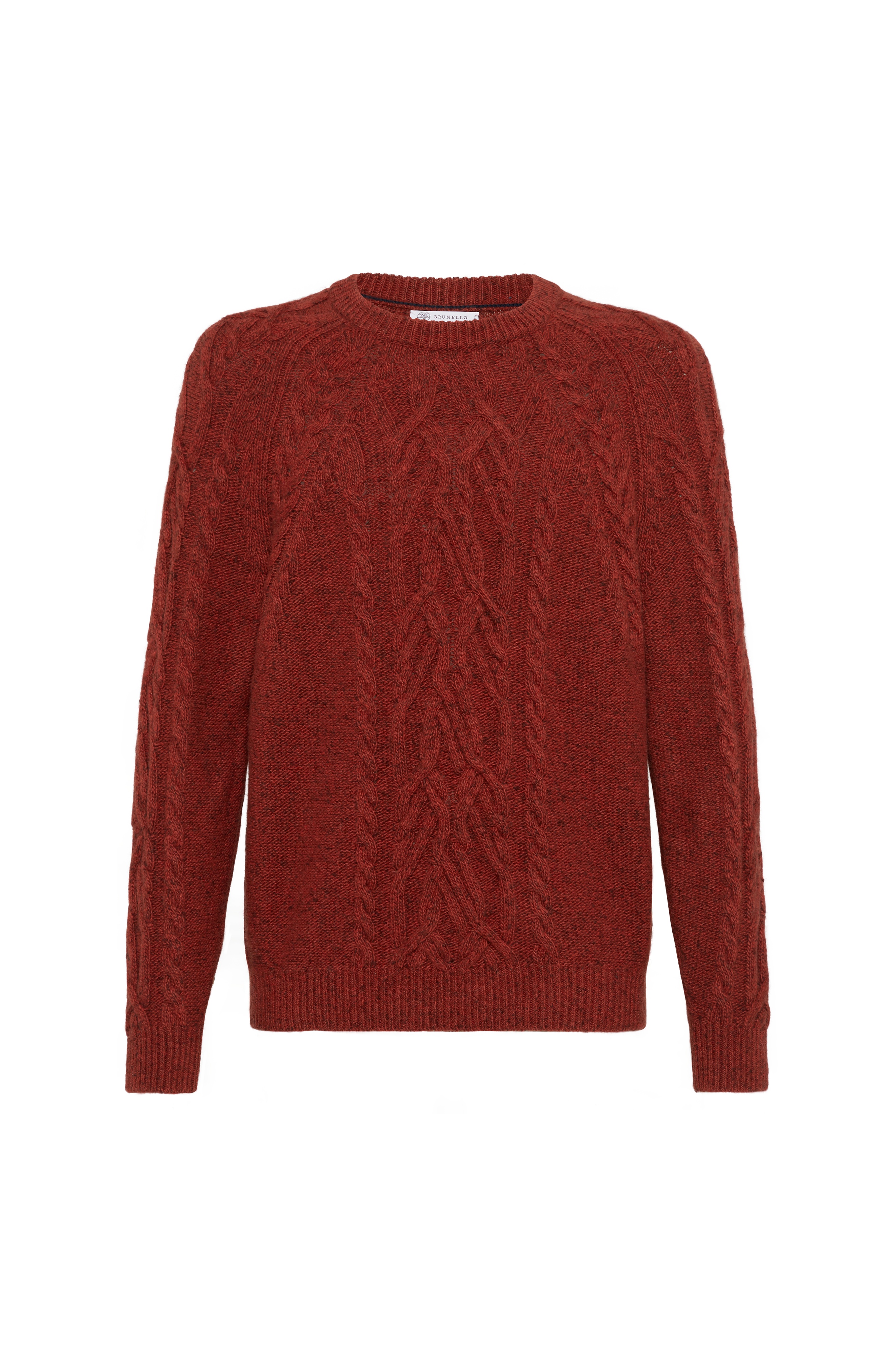 Noble cashmere fibers provide the yarn with warmth and lightness and enhance the season’s colors with the distinctive mottled effect of the flecked yarn. Crew-neck in rib knitRaglan sleeveRib knit cuffs and bottom bandCable knit