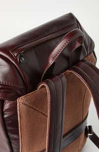 Lightweight and soft, the calfskin leather showcase a slight natural grain that enhances the season’s colors. The finish and the special coloring give the leather a mild light and dark effect with a vintage feel with shading and unique details in each style. Flap fastens with magnetic snaps and drawstring Adjustable shoulder straps Handle Outside zipper pocket Outside pockets with flap, magnetic snap and zip Water-resistant fabric lining Internal document pocket Internal pocket with zip closure Two interior pockets Strap on back for attaching to trolley handle All metal parts are Nickel-free Accessory is approx. 36 cm (14.17\") long, 48 cm (18.90\") high, and 20 cm (7.87\") wide