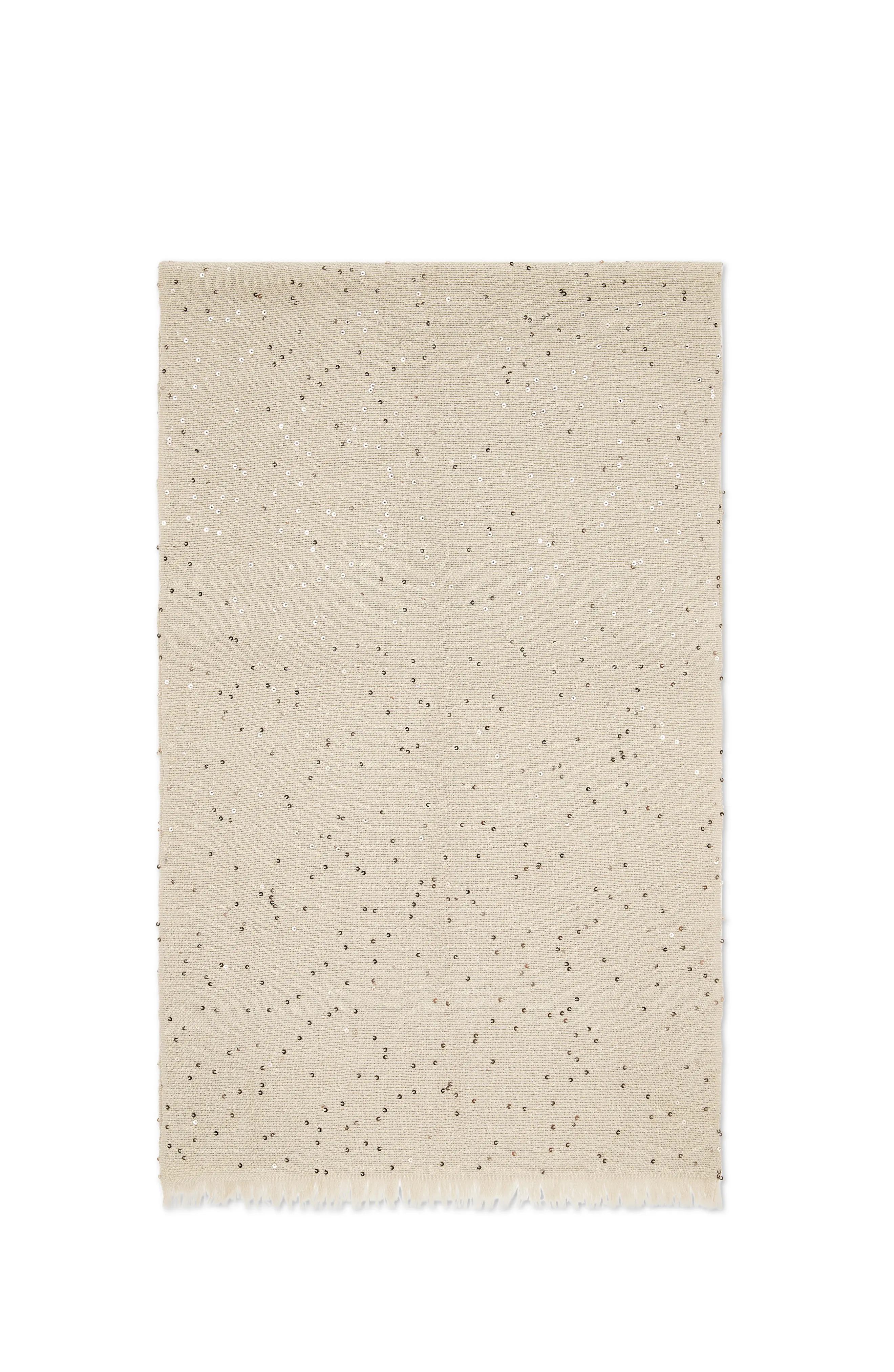 An iconic material of the Brunello Cucinelli collections, Diamond yarn combines the soft, enveloping effects of noble cashmere and silk fibers with sparkling reflections spread by small paillettes incorporated into the yarn. Scarf measures approx. 70 cm (27,56\") x 200 cm (78,74\")