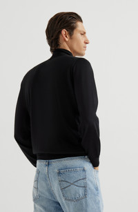The crafting of the natural yarn enhances the qualities of the cashmere and silk fibers and gives the garment a luminous texture and a light hand that is comfortable to wear. High turned-down collar in rib knitRib knit cuffs and bottom bandPlain stitch