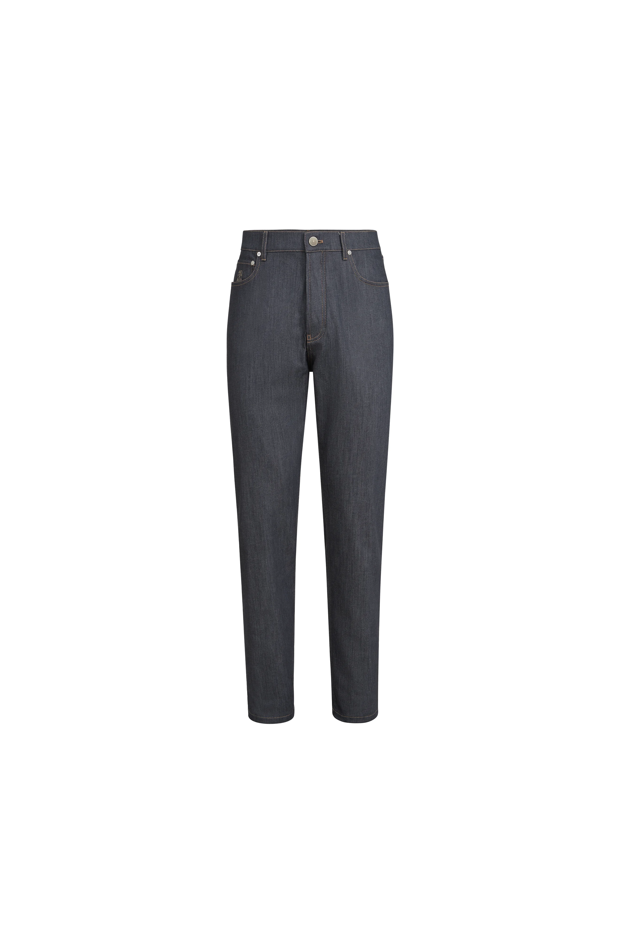 The refined grey color of the pure cotton fabric displays a distinctive uneven effect that is characteristic of denim and attributed to the normal washing process. The color tends to evolve with daily use and naturally lightens after cleaning. Metal button closure Front pockets with watch pocket Back patch pockets Plain hem Iconic fit: the fit is characterized by slightly high-rise proportions with a regular design along the leg
