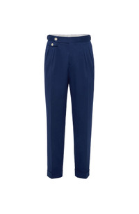 Comfort cotton and cashmere gabardine tailor fit trousers with double pleats and waist tabs
