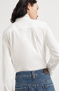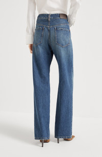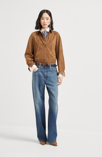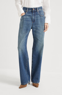 The new Authentic cotton fabric maintains the characteristically full, even texture of denim, but is also pleasantly soft and comfortable to wear. The lived-in look and special nuanced effect of the color have been created thanks to various dyes and washes. As a result, its hue may evolve and naturally lighten with washing and daily use, refined traits of the fabric itself. Zip closure with button Front patch pockets with watch pocket Back pockets Nickel-free monili decoration