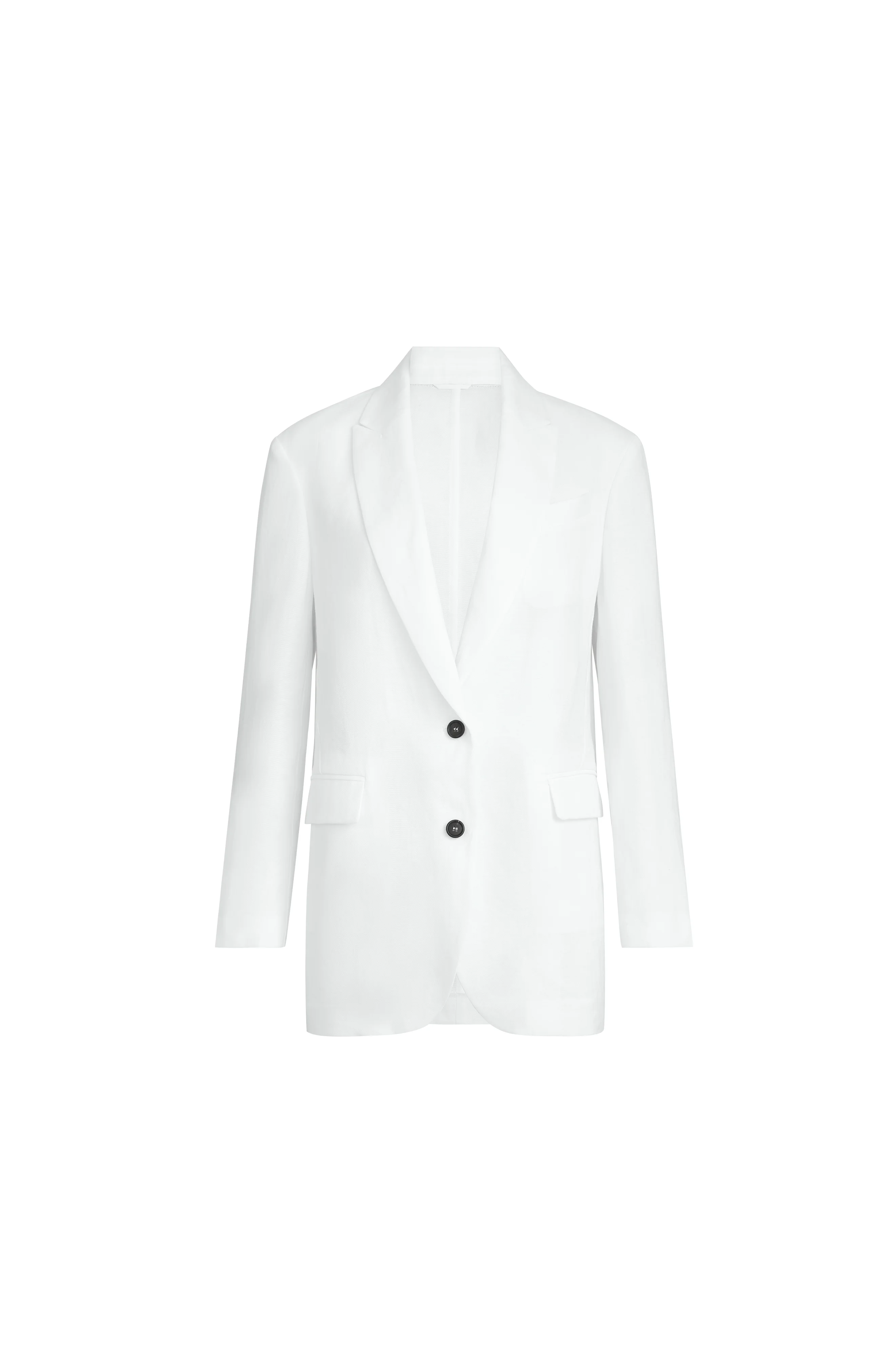 The pure cotton fabric stands out for the light, breathable hand created by the refined natural fiber. Horn button closurePeak lapelCuffs have four horn buttonsWelt pockets with flap and chest pocketUnlinedDouble back ventNickel-free monili decoration