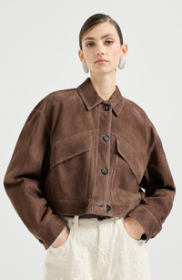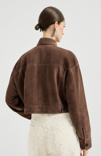 Brunello Cucinelli Couture suede cropped outerwear jacket in Brown at Nordstrom