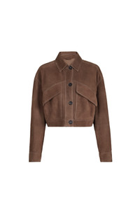 Couture suede is a leather that combines a compact look, inspired by country style, with a soft and pleasantly velvety hand. The acetate and silk fabric lining ensures added comfort. Horn button closureShirt-style collarButton cuffsPatch hand pockets with flapUnlinedSide buttons for fit adjustmentNickel-free monili decoration