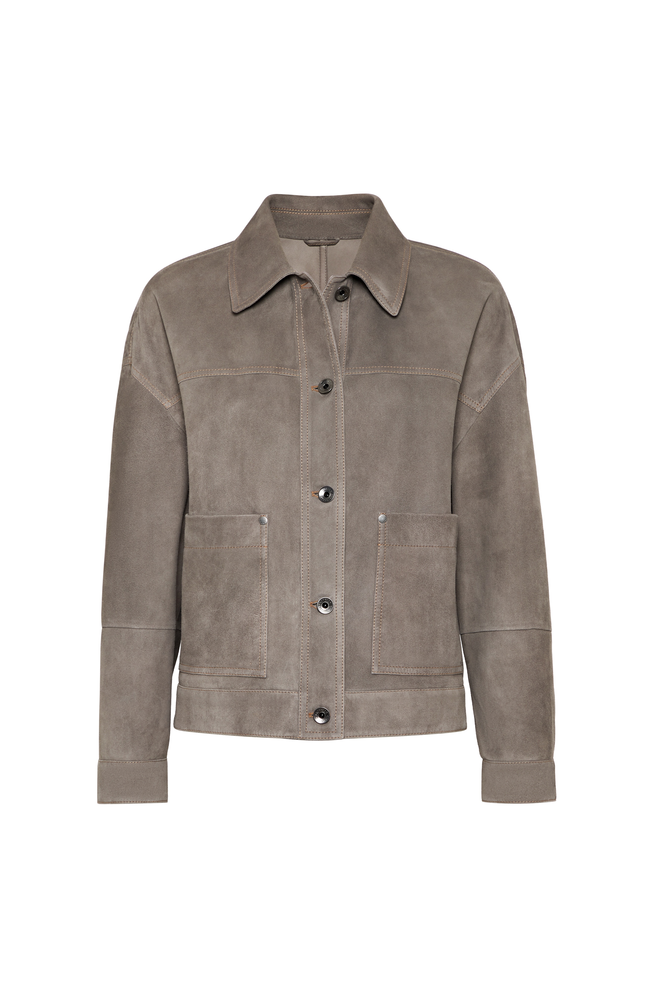 Couture suede is a leather that combines a compact look, inspired by country style, with a soft and pleasantly velvety hand. The acetate and silk fabric lining ensures added comfort. Metal button closure Unlined Patch hand pockets Button cuffs Nickel-free monili decoration