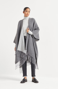 Brunello Cucinelli Double knit poncho in Medium Grey at Nordstrom
