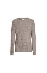 Manufacturing of the pure cotton yarn enhances the qualities of the natural fibers and makes the garment lightweight and comfortable to wear. Crew-neck with raw edge effectRib knit cuffs and bottom bandCable knit