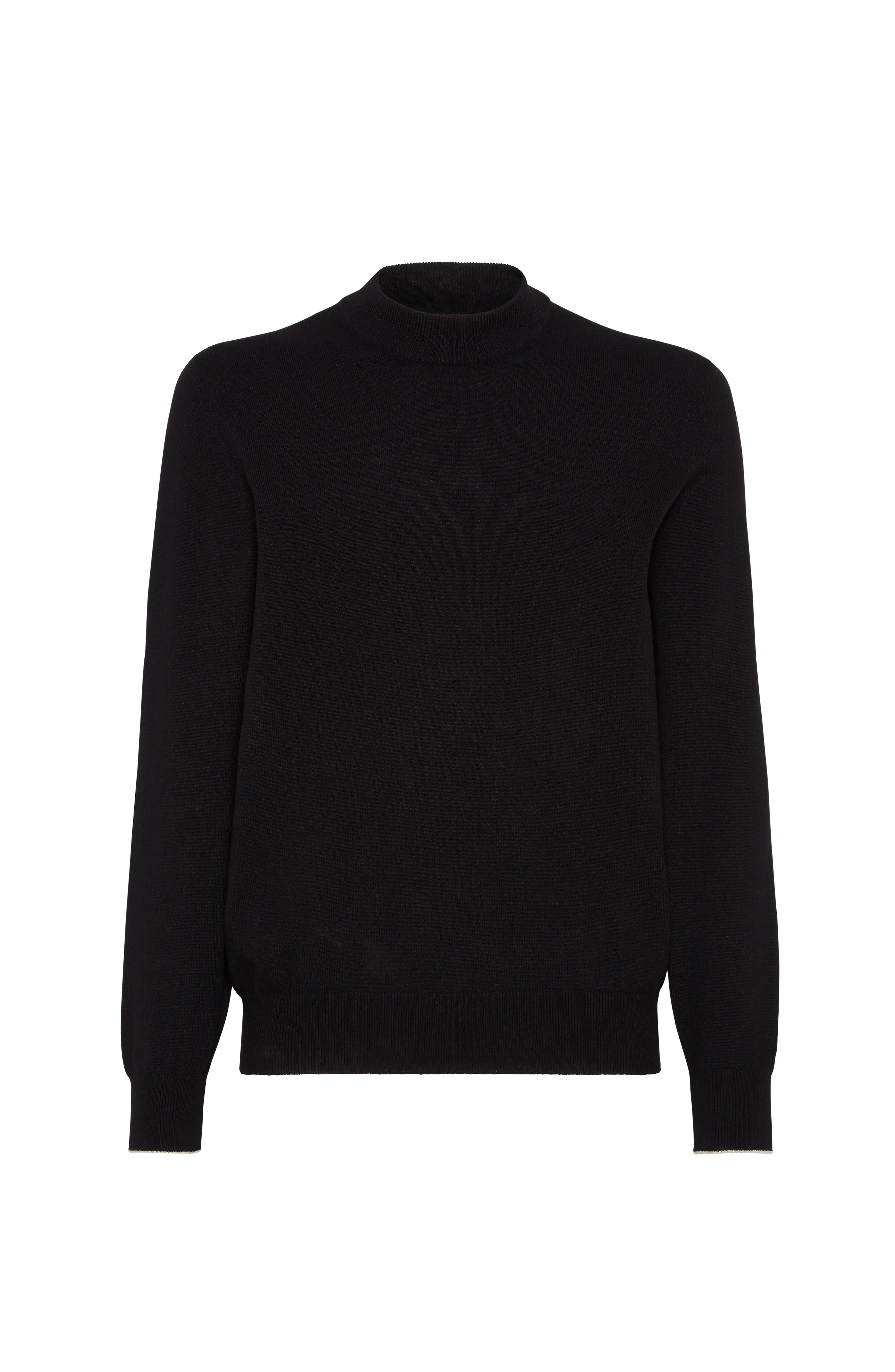 The noble cashmere fiber is characterized by an extreme fineness and also for its precious insulating qualities which guarantee warmth, providing coverage and lightness when worn. Funnel neck Regular shoulder Wide sleeve Flat pressed hem at cuffs Plain stitch