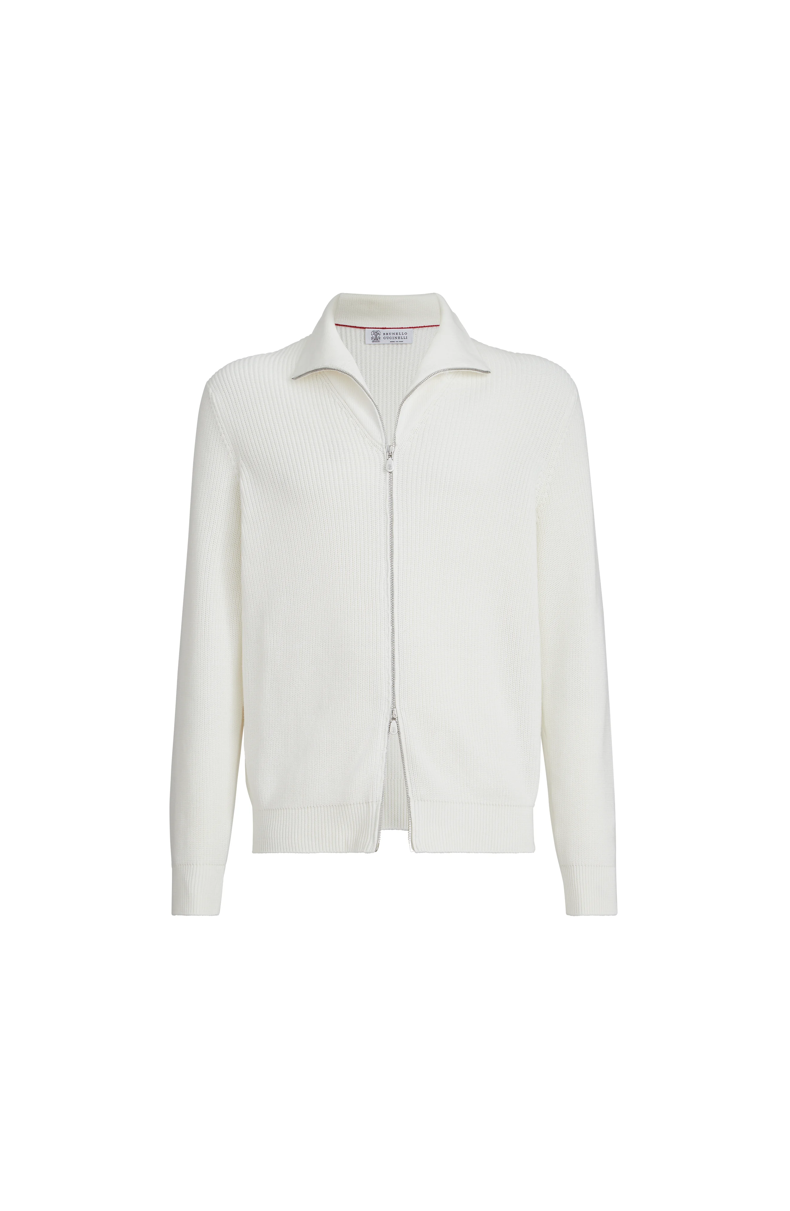 Manufacturing of the pure cotton yarn enhances the qualities of the natural fibers and makes the garment lightweight and comfortable to wear. Zip closureHigh collarRegular shoulderRib knit cuffs and bottom bandVertical hand pocketsHalf English rib