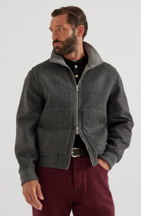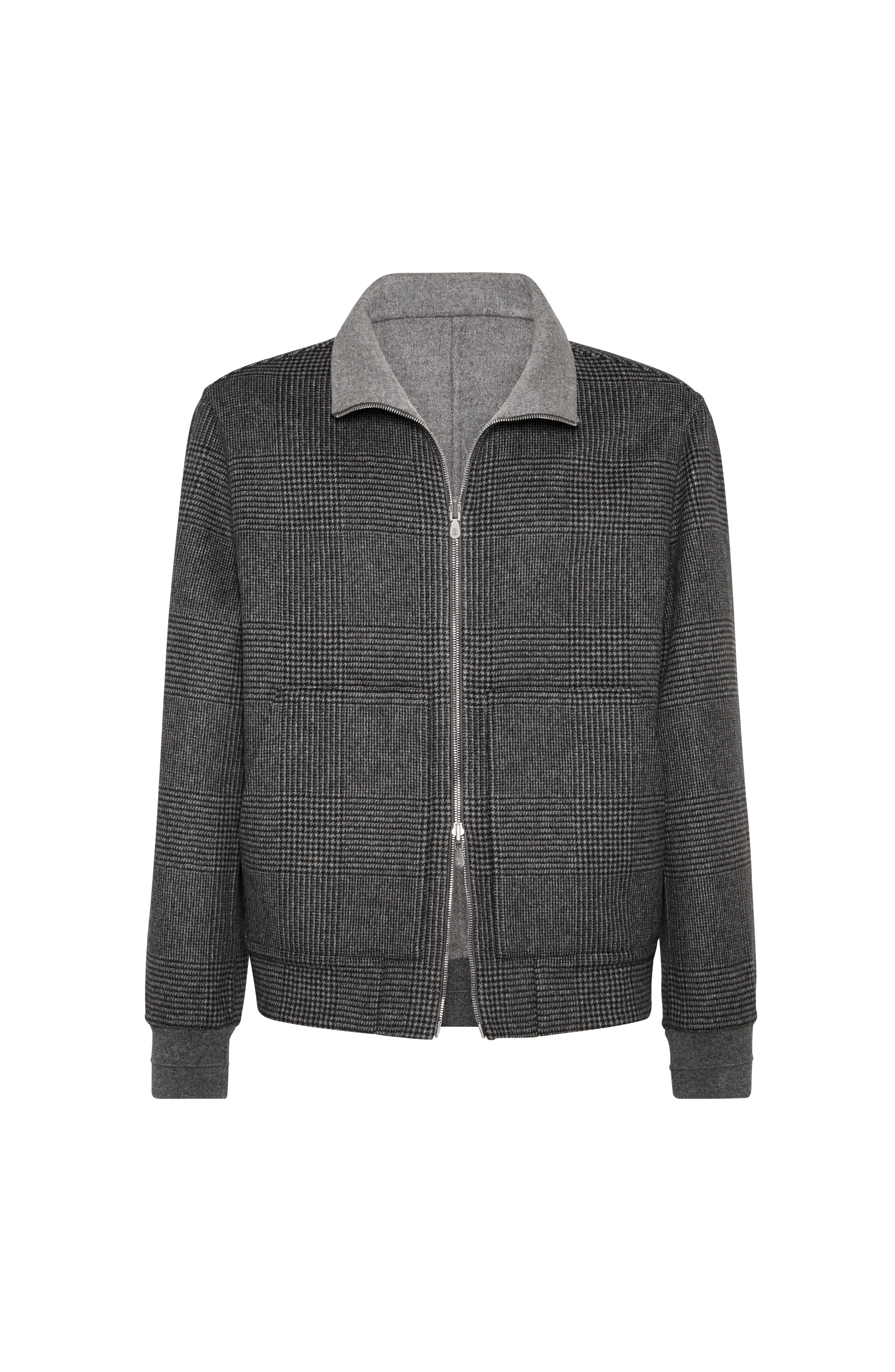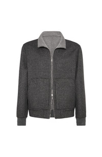 Hand-crafted reversible bomber jacket in cashmere Prince of Wales flannel double cloth with zipper