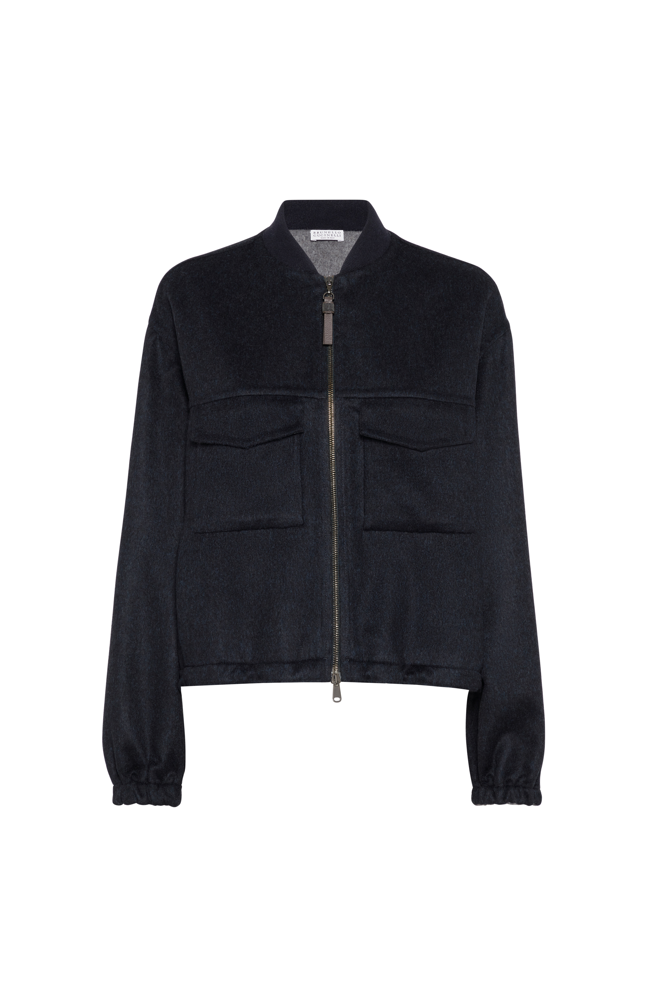 A special process brings the pure virgin wool double fabric to life: two fabrics are woven simultaneously on the loom, connected by ultra-fine threads along the entire surface. The material is thin, lightweight, and at the same time, soft and cozy. Two-way zip closureTwo interior pocketsUpper pockets with flapElastic cuffsHand pocketsDrawstring hemNickel-free monili decoration