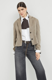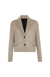 Hand-crafted virgin wool double cloth cropped blazer with shiny cuffs