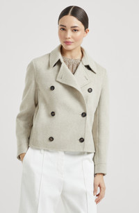 Hand-crafted cropped pea coat in cashmere double beaver cloth with monili