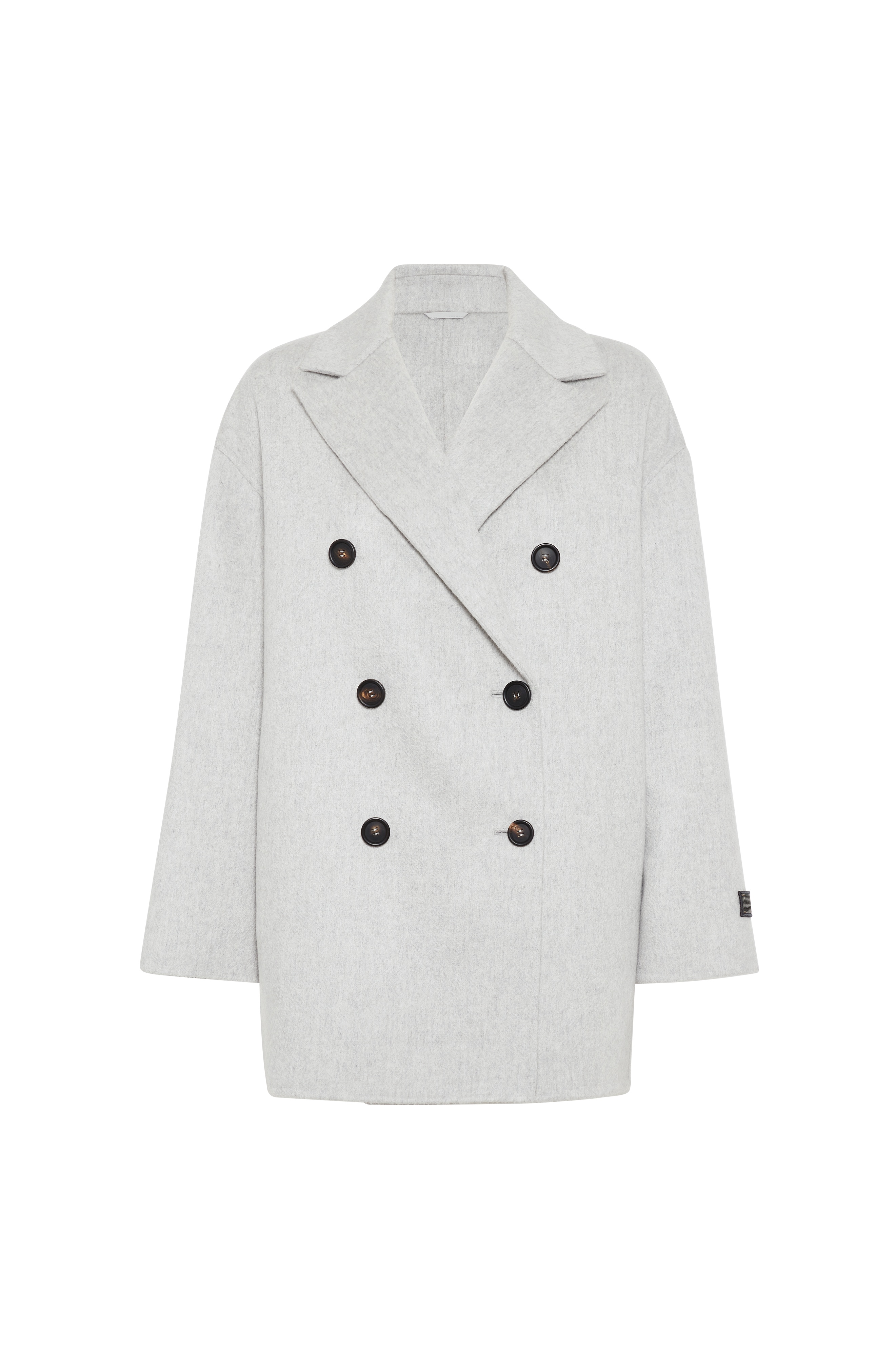 Cashmere double beaver cloth pea coat with precious patch