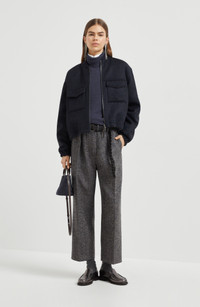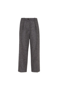 The virgin wool tweed is a warm, resistant fabric, characterized by a slightly irregular surface and a substantial hand. Traditionally associated with the style of British menswear, it stands out for its textured appearance and the typical slightly melange herringbone design. Zip closure with buttonVertical front pocketsPleatBack patch pocket with buttonUnlined