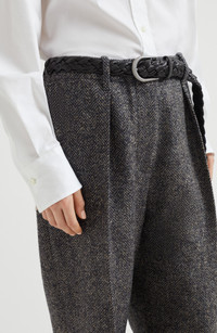 Brunello Cucinelli Herringbone tweed pleated trousers in Blue at Nordstrom