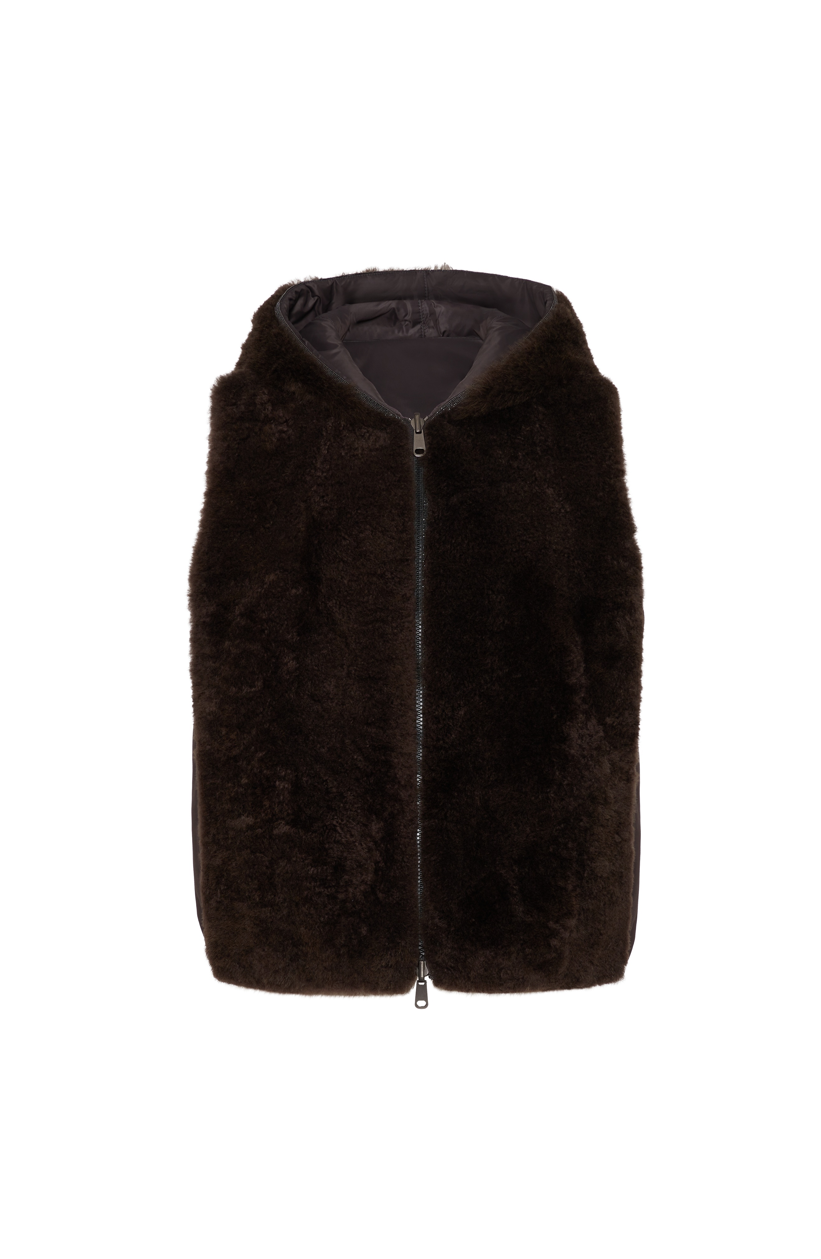 Cashmere shearling reversible hooded vest with precious trim