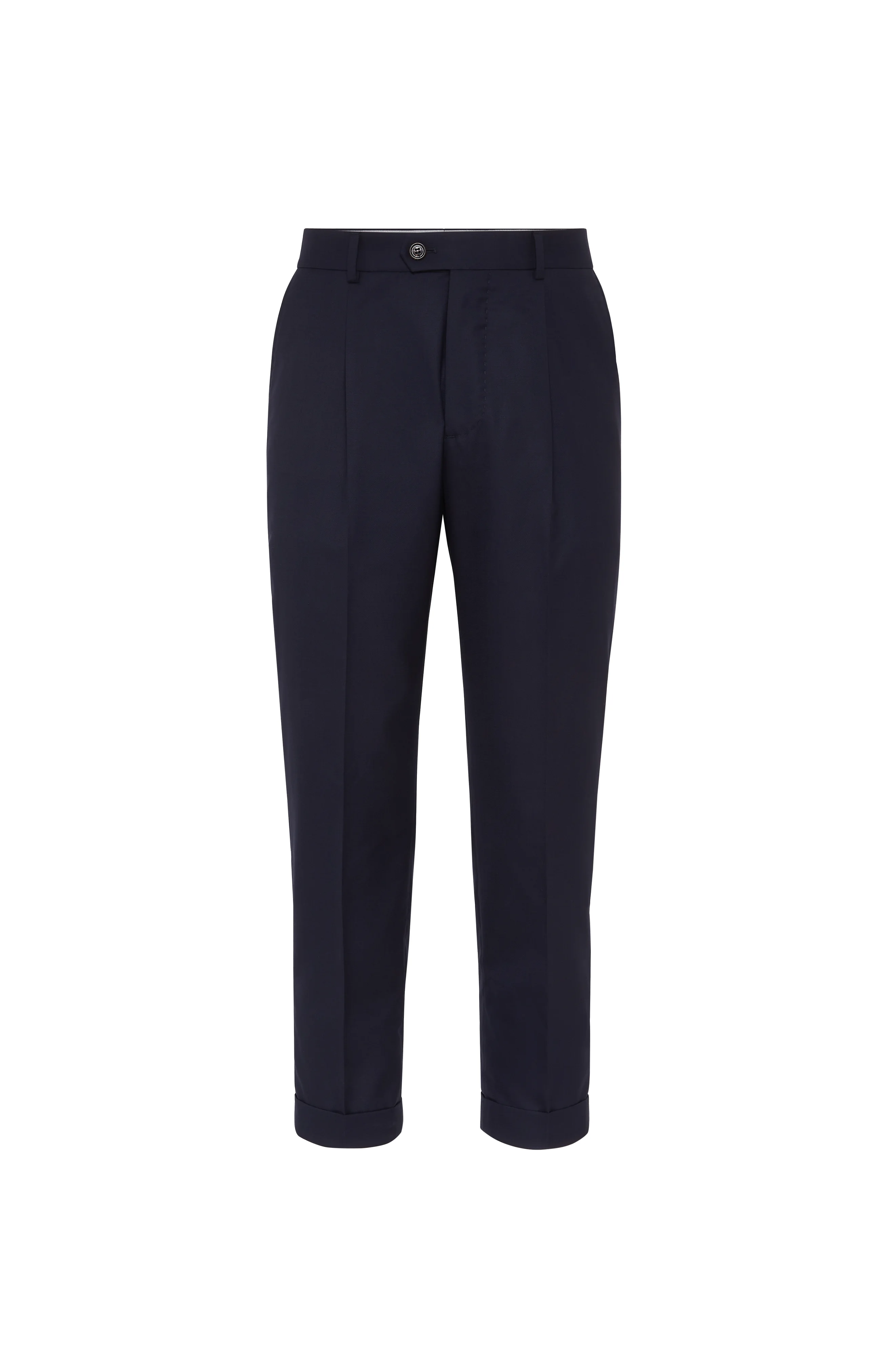 Virgin wool and silk lightweight hopsack leisure fit trousers with pleat