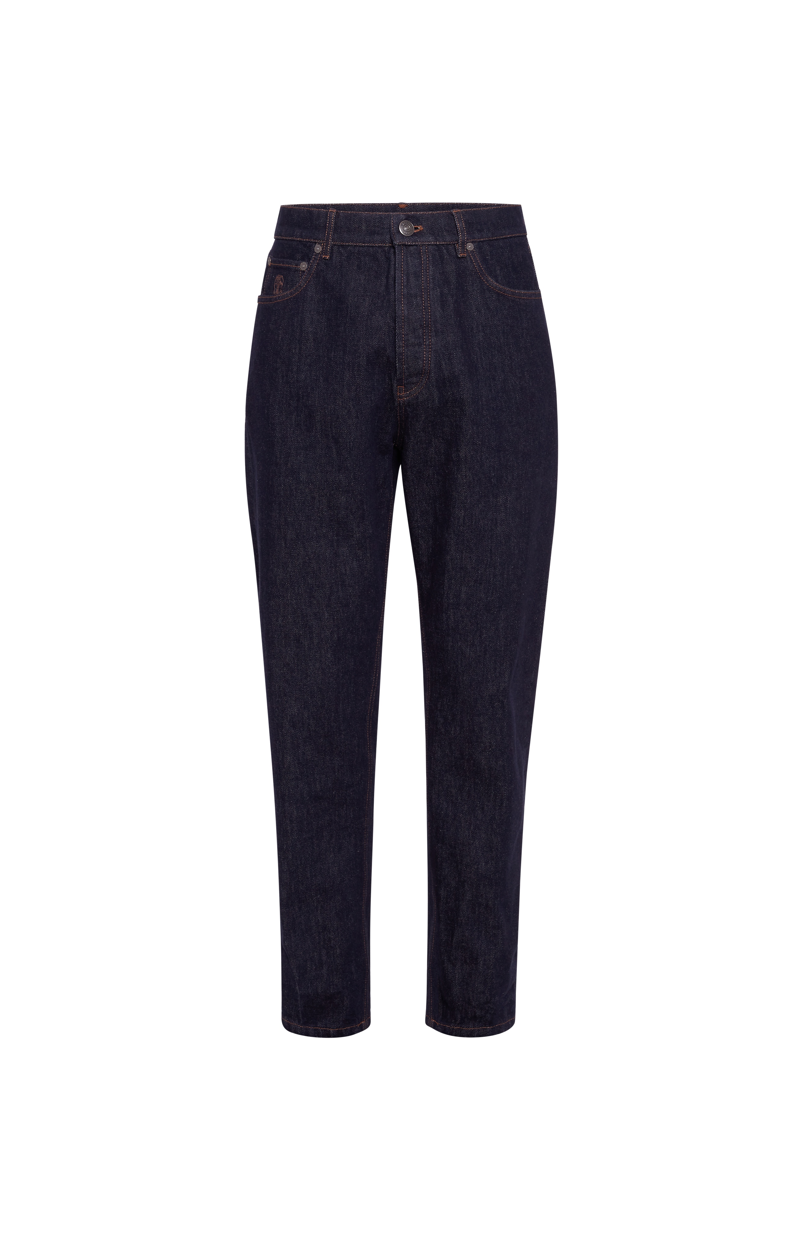 The pure cotton denim is a refined Japanese fabric, characterized by a light texture and a dark hue achieved through a special dyeing process, which allows unique shades of color to be retained even after washing. Metal button closureFront pockets with watch pocketBack patch pocketsPlain hemIconic fit: the fit is characterized by slightly high-rise proportions with a regular design along the leg