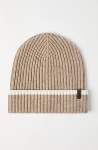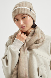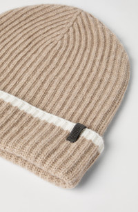 Cashmere English rib knit beanie with monili