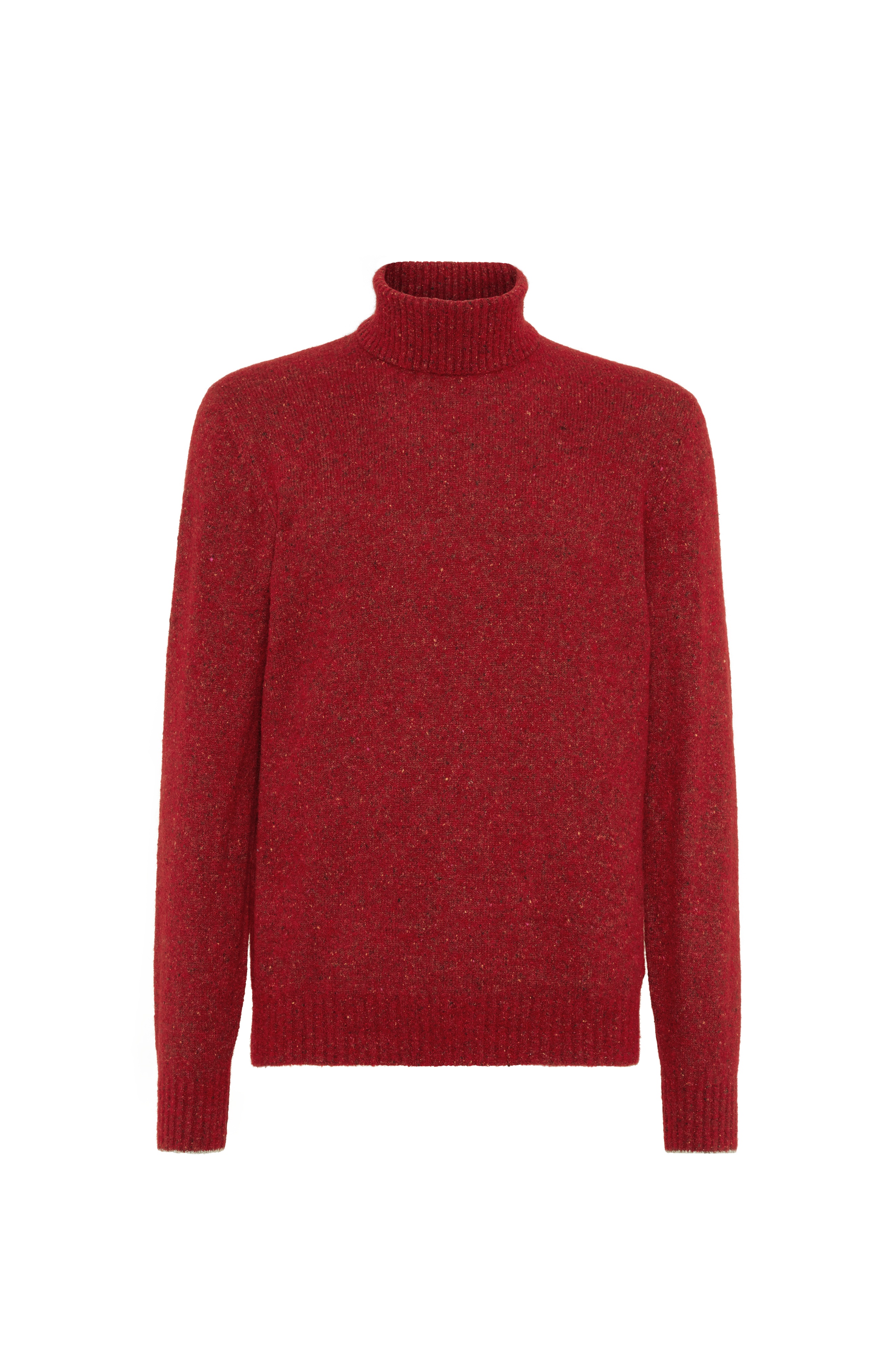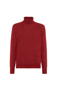 Soft and airy, the alpaca fibers add lightness to the wool, silk and cotton yarn, enhancing the natural qualities of the raw materials while ensuring warmth and comfort. The distinctive mottled effect of the flecked yarn enhances the season’s colors. High turned-down collar Regular shoulder Rib knit cuffs and bottom band Plain stitch