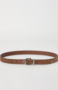 The reversed calfskin leather is characterized by a sueded look with a slightly uneven texture that is soft to the touch. Belt height approx. 2.5 cm (0,98\") All metal parts are Nickel-free