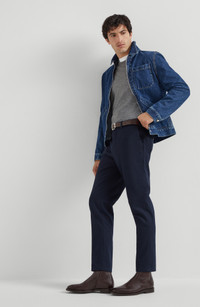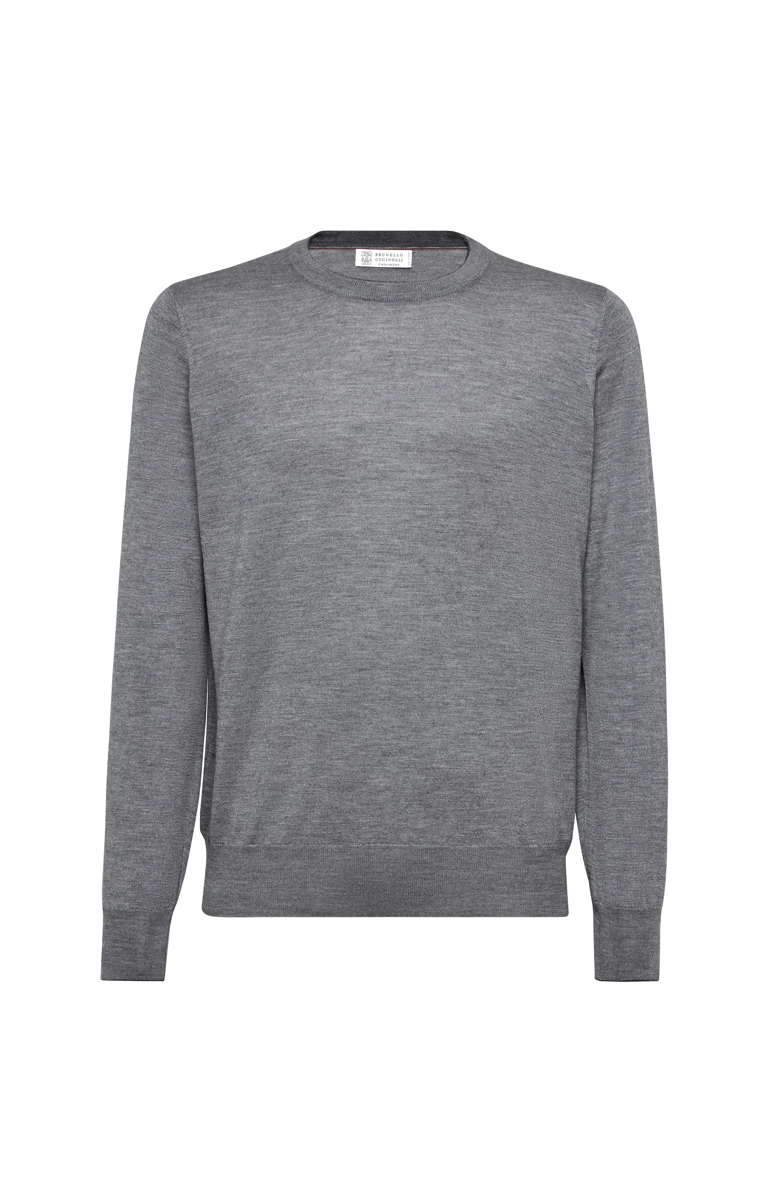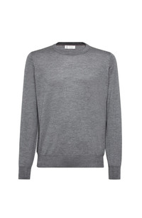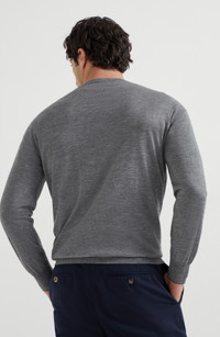 Single-ply manufacturing of the cashmere and silk yarn brings out the qualities of the natural fibers and provides lightness and comfort. The garment takes on a balanced weight which is very pleasant to wear. Crew-neck in rib knit Rib knit cuffs and bottom band Plain stitch