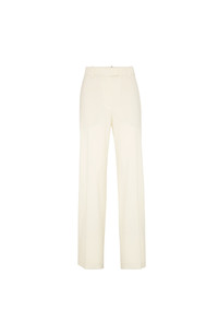 The comfort virgin wool gabardine is a compact, soft fabric, characterized by its typical diagonal weave. A small percentage of synthetic fiber provides added comfort. Zip closure with buttonFront pocketsBack welt pocketsPleatPlain hemHalf-lined in acetateNickel-free monili decoration
