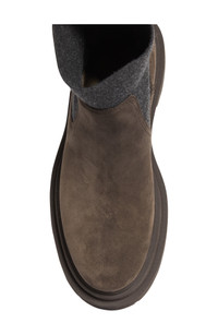 Suede boots with knit inseert and precious loop detail