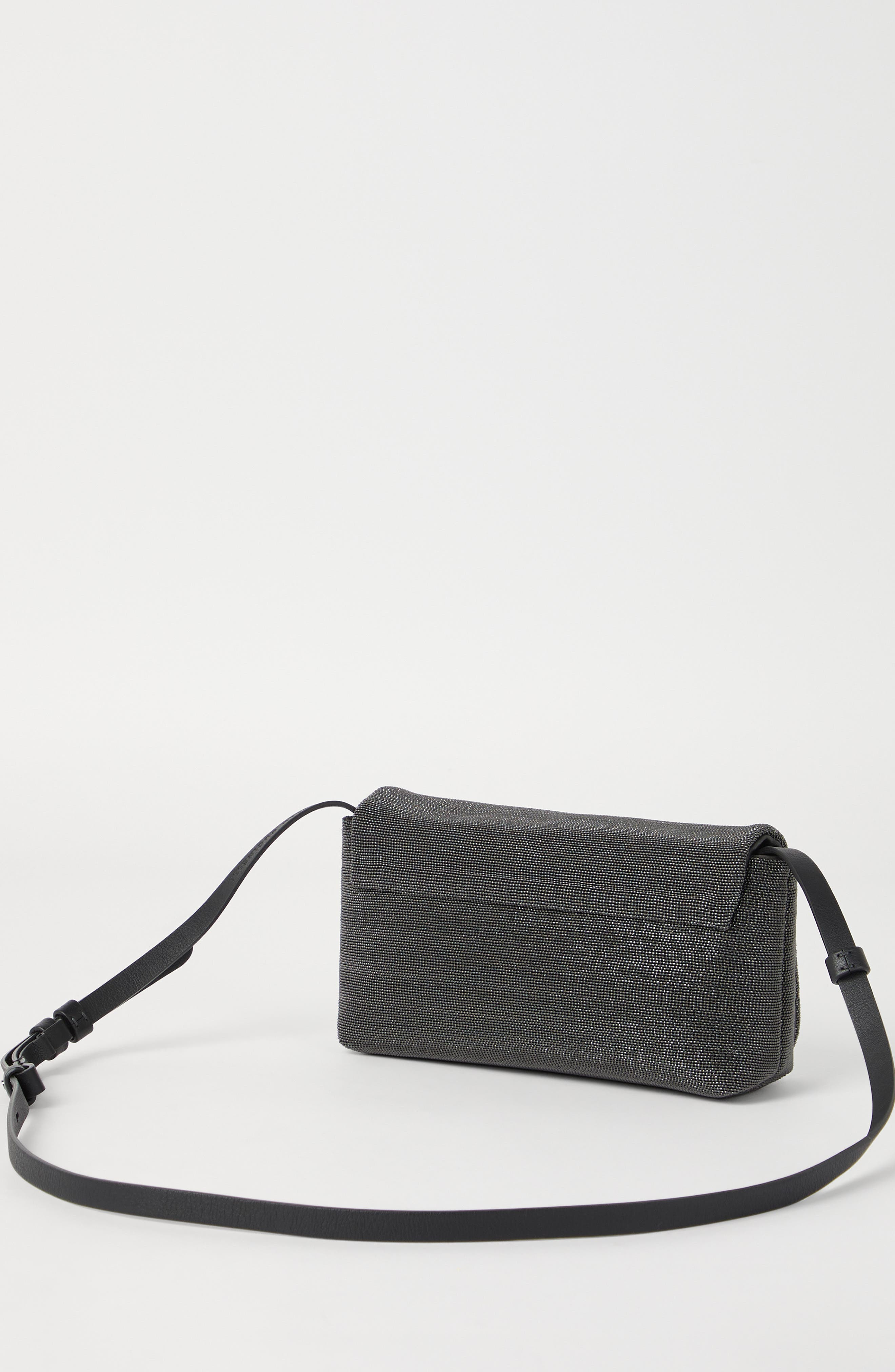 The body, shoulder strap and details display the even texture of the Mat calfskin, a leather produced in Europe Monili, the iconic element of the Brunello Cucinelli collections, is made up of fine rows of brass beads plated in different finishes. The faceted cut of the beads emphasizes the shiny tones of the monili. A water-resistant fabric lining helps to protect the leather from the slightest contact with water. Flap closure with magnetic snapsAdjustable shoulder strapOpen internal compartmentNickel-free monili decorationBag is 20 cm (7,87\") long, 6 cm (2,36\") wide and 11 cm (4,33\") high