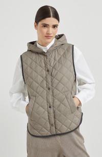 Lightweight matte nylon quilted vest with Thermore® padding and hood
