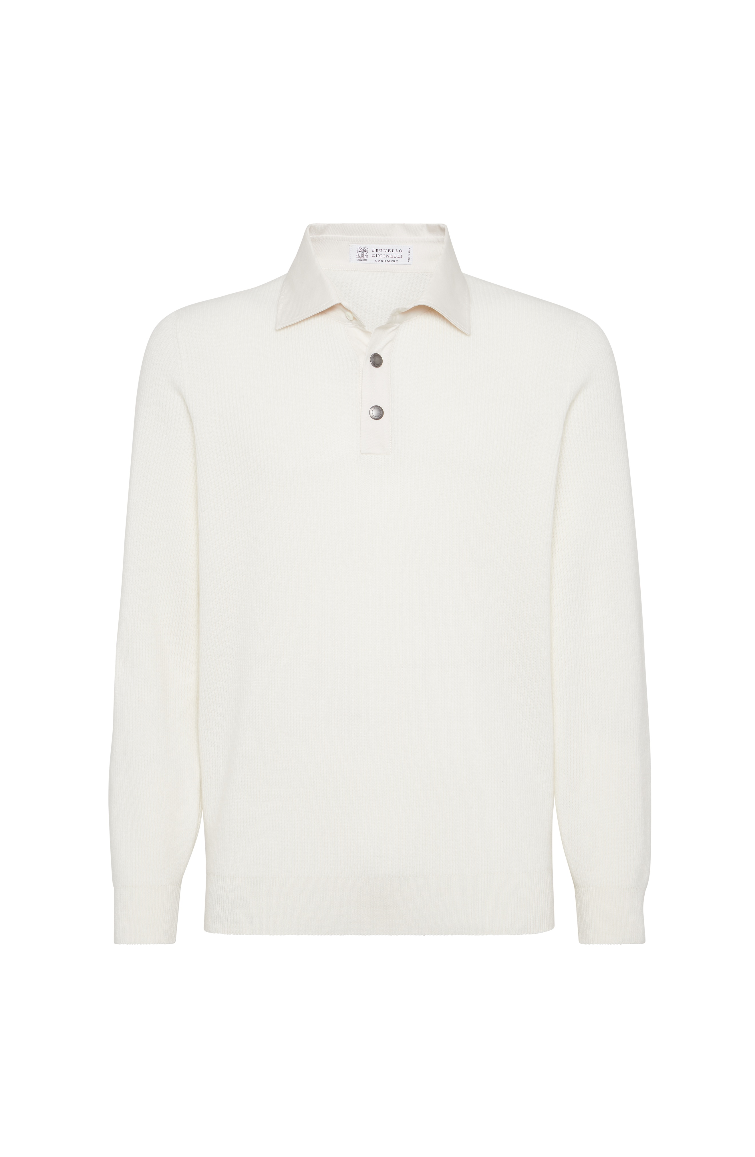 The noble cashmere fiber, enriched with the classic feel of English rib knitting, is characterized by its extreme fineness and precious insulating qualities, which simultaneously guarantee warmth, protection and lightness when worn. Shirt-style collar with button openingRegular shoulderFlat pressed hem at cuffs and rib knit bottom bandRib knit
