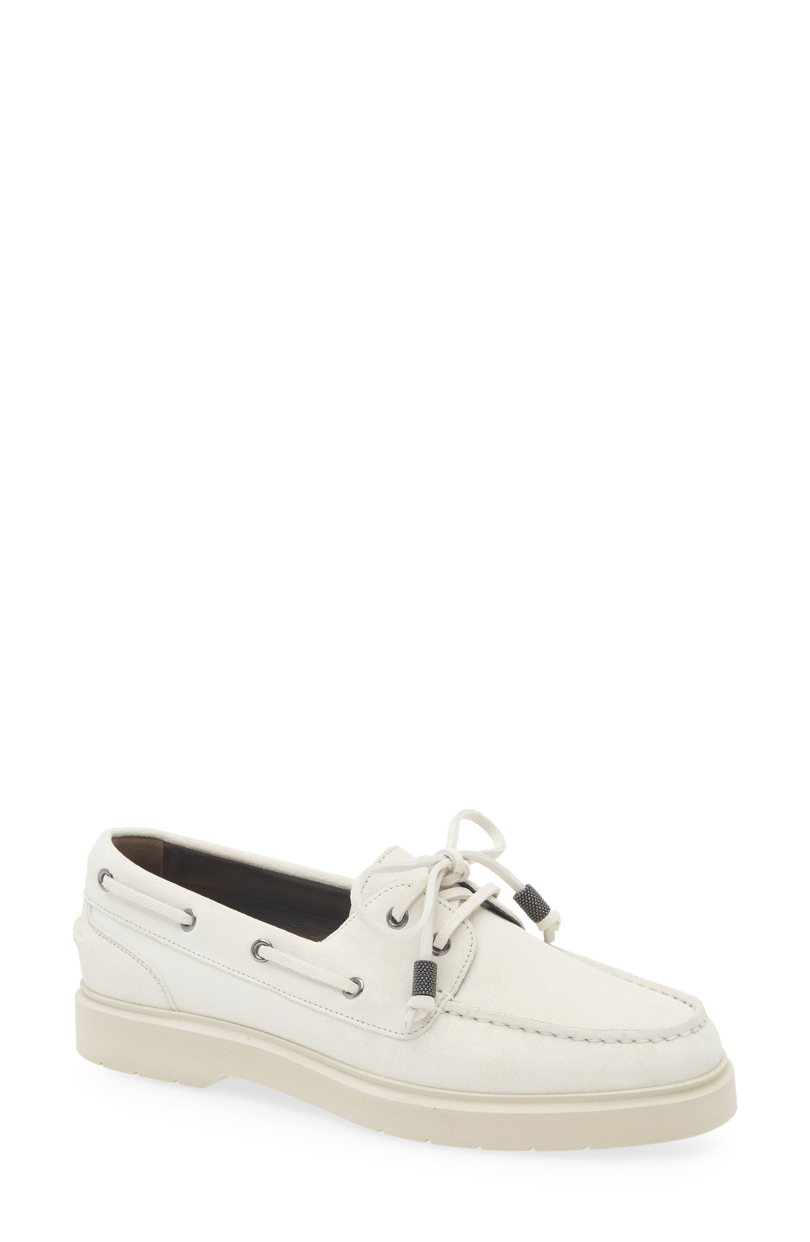 Brunello Cucinelli Sail Monili Trim Boat Shoe in Bianco Ottico at Nordstrom