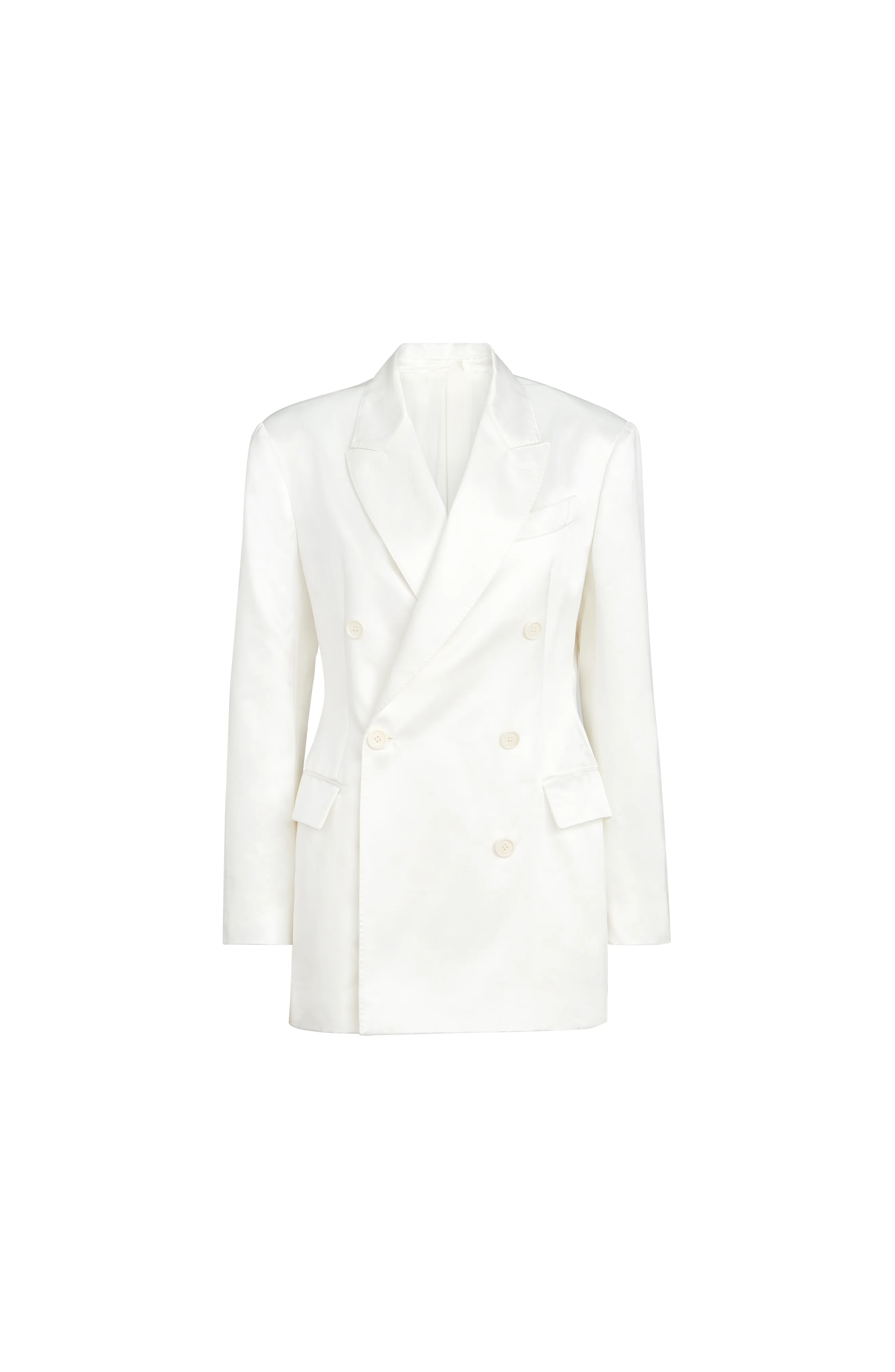 Cotton an silk satin combines the softness and sheen of silk with the resistance and breathability of cotton, while the fluid twill stands out for its light, very fluid and, at the same time slightly crisp appearance. Corozo buttons closurePeak lapelCuffs with corozo buttonsWelt pockets with flap and chest pocketSilk-blend crepe liningSingle back ventNickel-free monili decoration