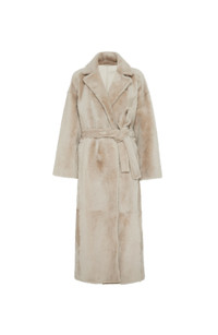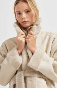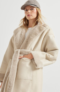Reversible shearling coat with shiny detail