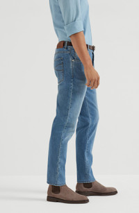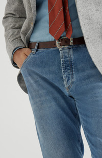 Made in Italy, the fabric offers a substantial and resistant texture, traditional characteristics of denim. A small percentage of synthetic fiber in the fabric ensures comfort when wearing, even in the most fitted cuts. Button closureFront pockets with watch pocketBack patch pockets17.5 cm hemSlim fit: the lines are close to the body from the seat to the hem, and the waist is slightly low