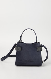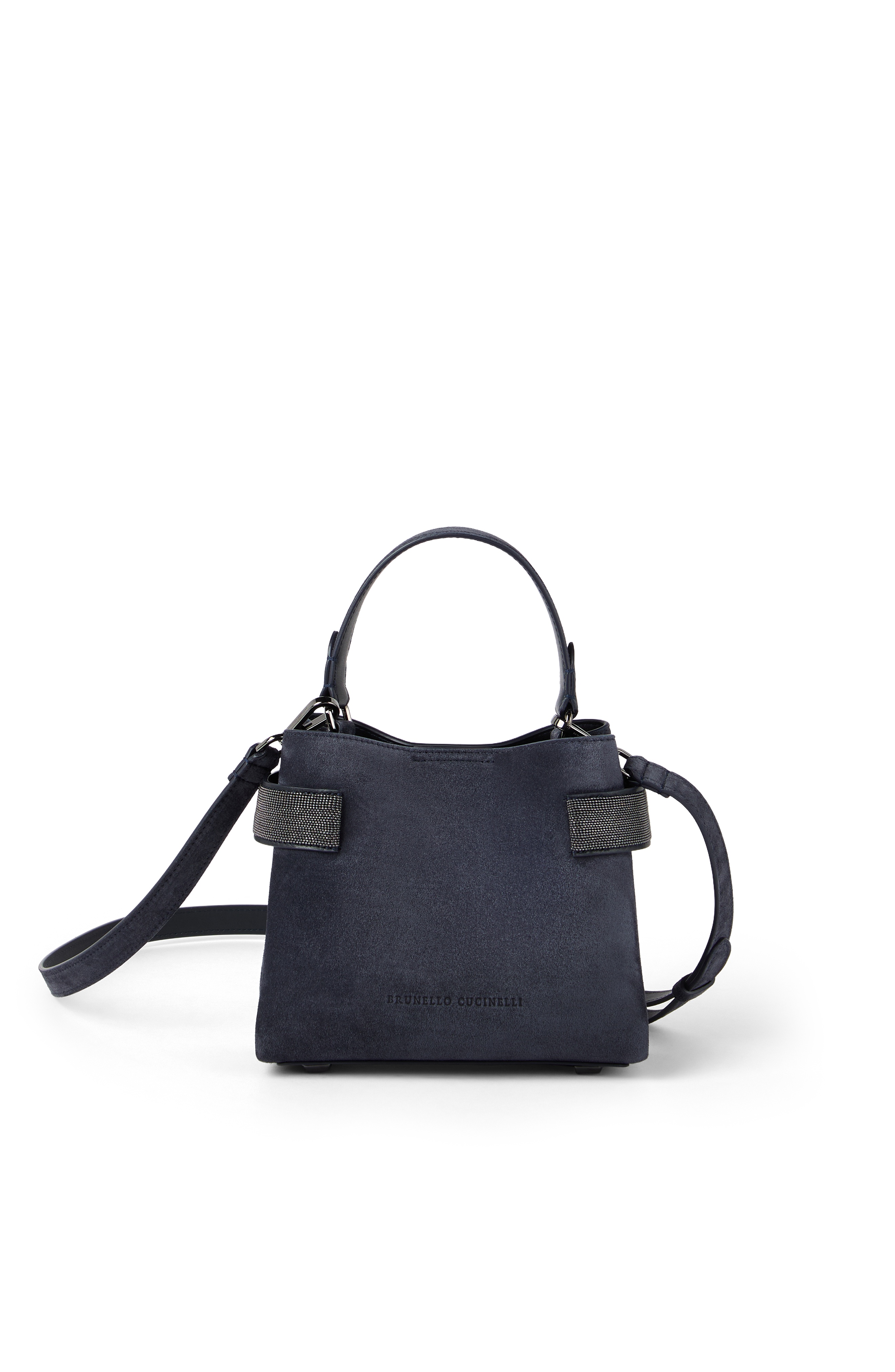 The refined suede is a compact leather with a soft, velvety texture. A leather lining completes the look of the bag. Magnetic snap closure Adjustable and detachable shoulder strap Handle Leather lining Open internal compartment Nickel-free monili decoration Bag is 19 cm (7.48\") long, 9 cm (3.54\") wide and 17 cm (6.69\") high