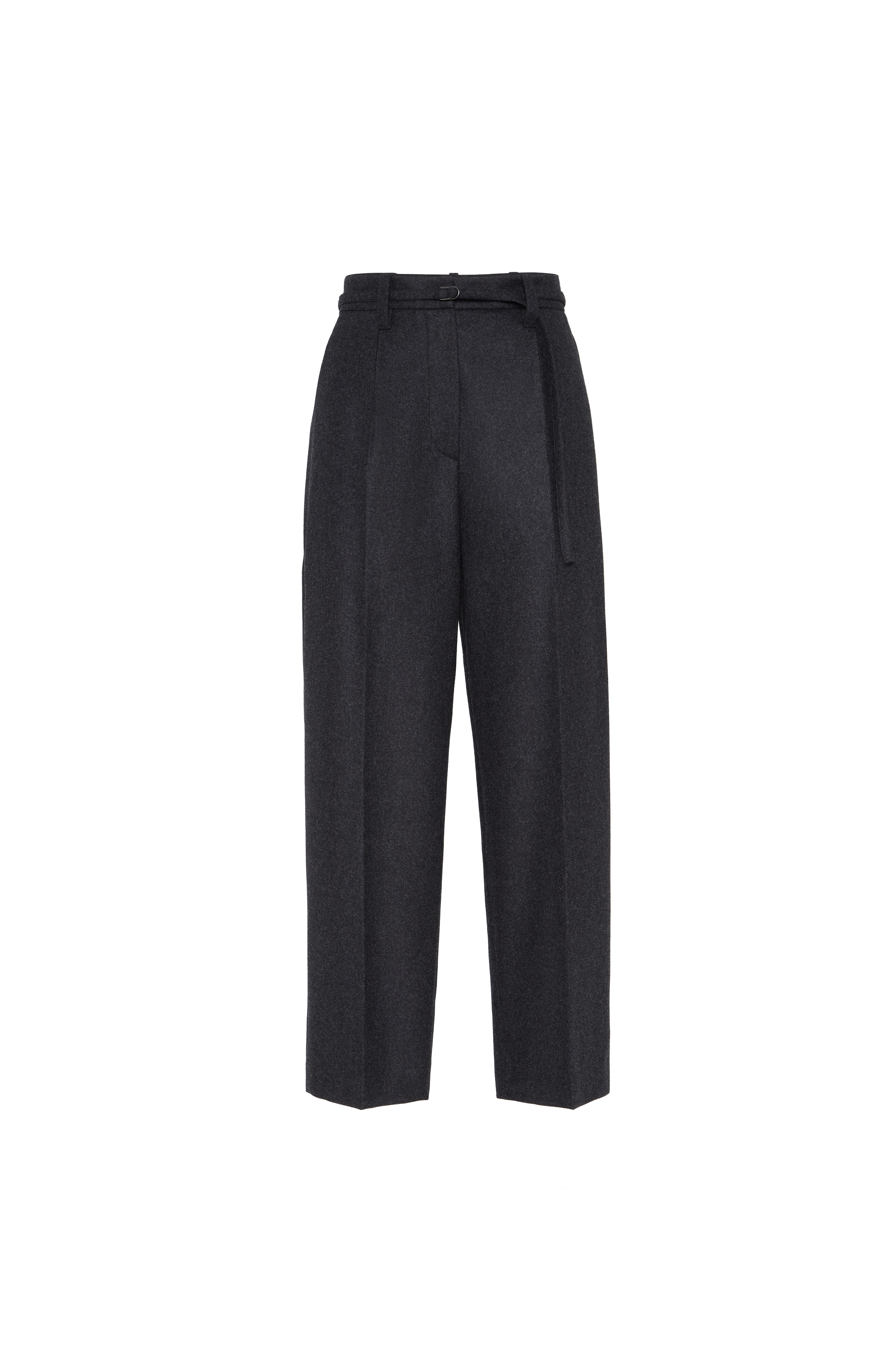 The worsted pure virgin wool yarn enhances the rich, compact look of flannel, a traditional menswear fabric. Zip closure with metal hook and backing buttonDetachable ring beltSlanted front pocketsPleatBack welt pocketsUnlinedNickel-free monili decoration