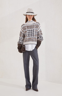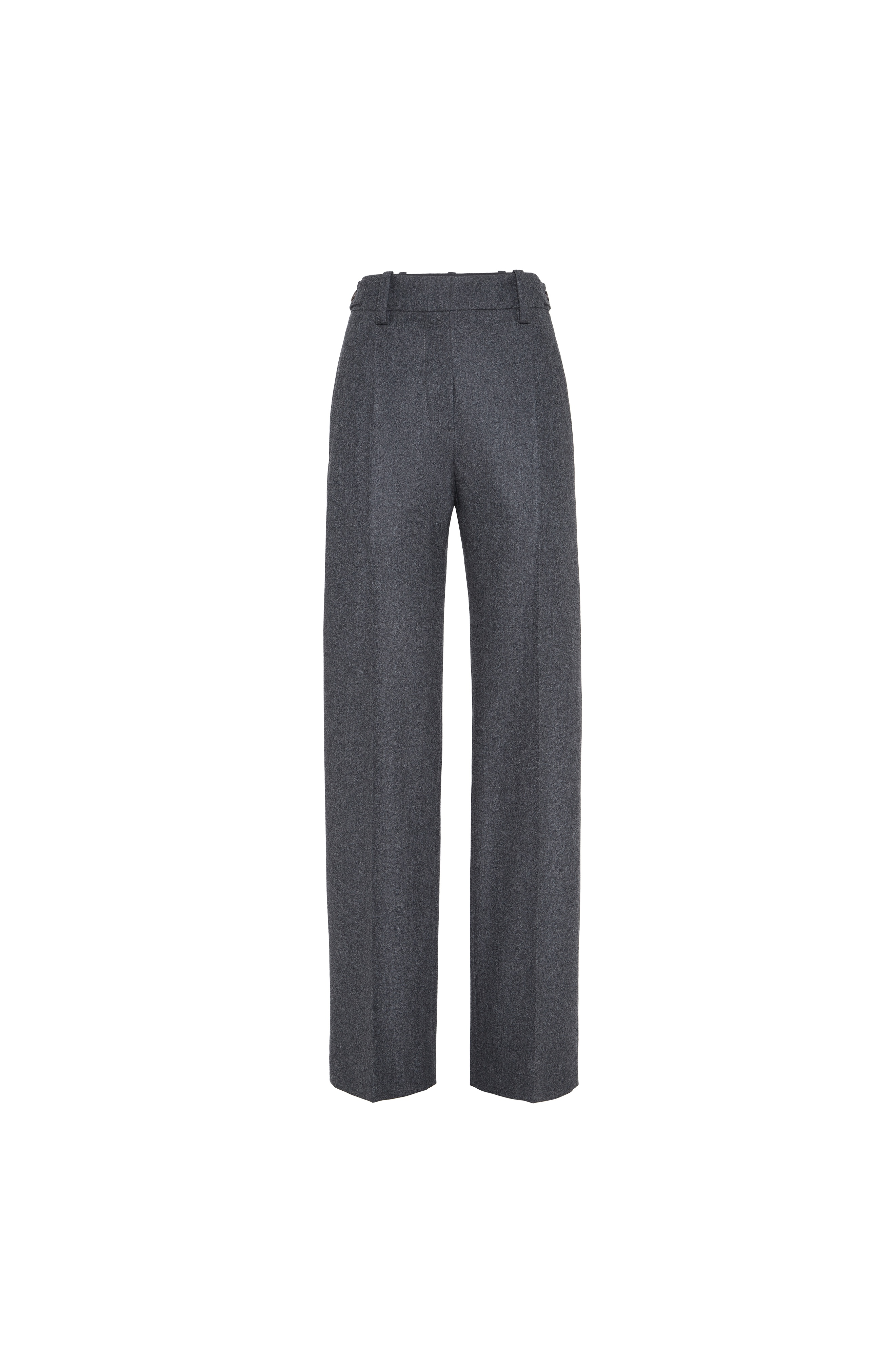 Virgin wool and cashmere twill flannel baggy trousers with monili