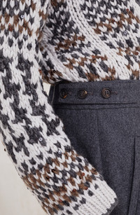 The worsted pure virgin wool yarn enhances the rich, compact look of flannel, a traditional menswear fabric. Zip closure with metal hooks and backing buttonFront pocketsBack welt pocketsSide buttons for fit adjustmentUnlined