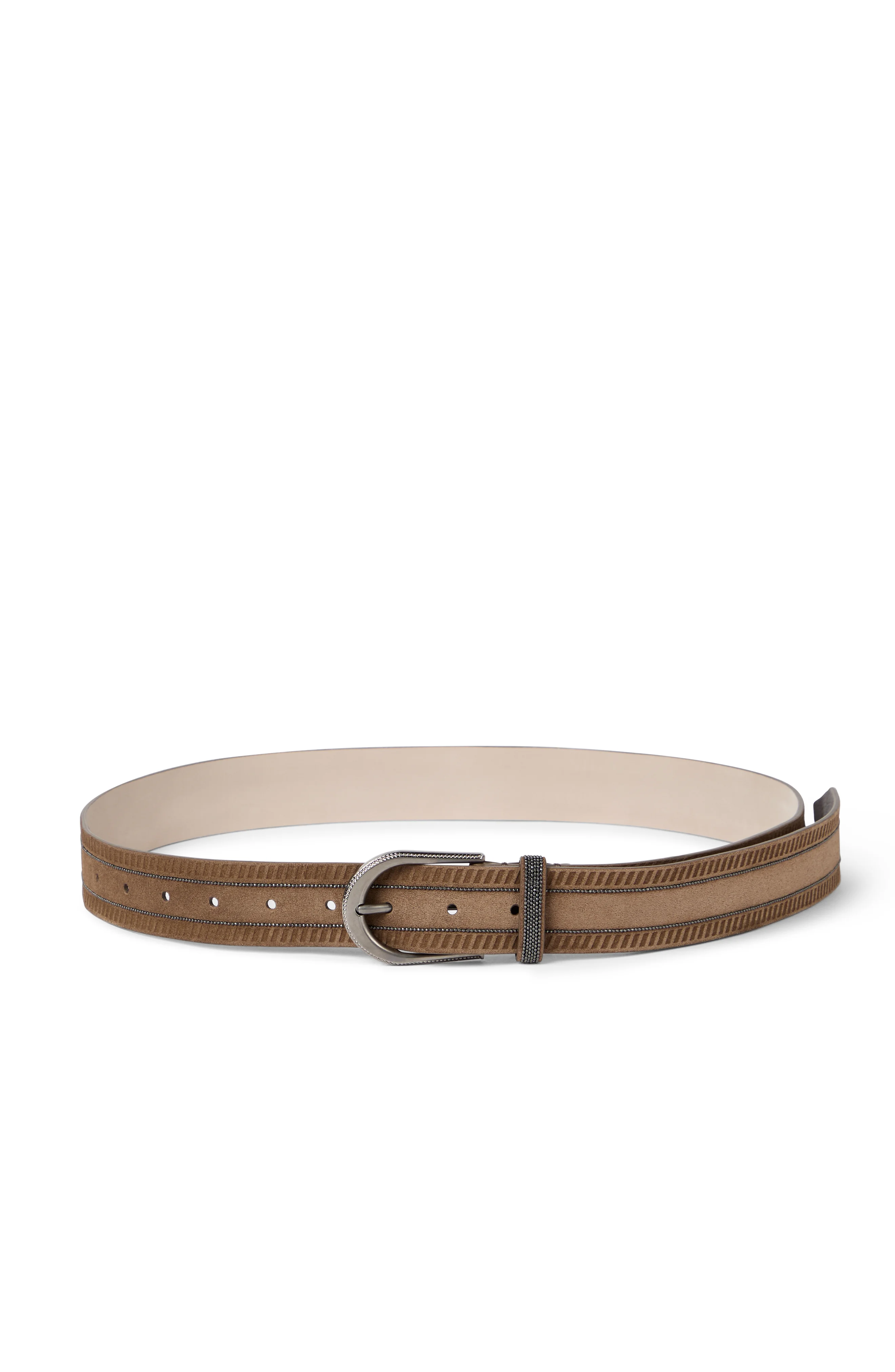 The refined suede is a compact leather with a soft, velvety texture. Belt height is approximately 2.5 cm (0.98\") Nickel-free monili decoration