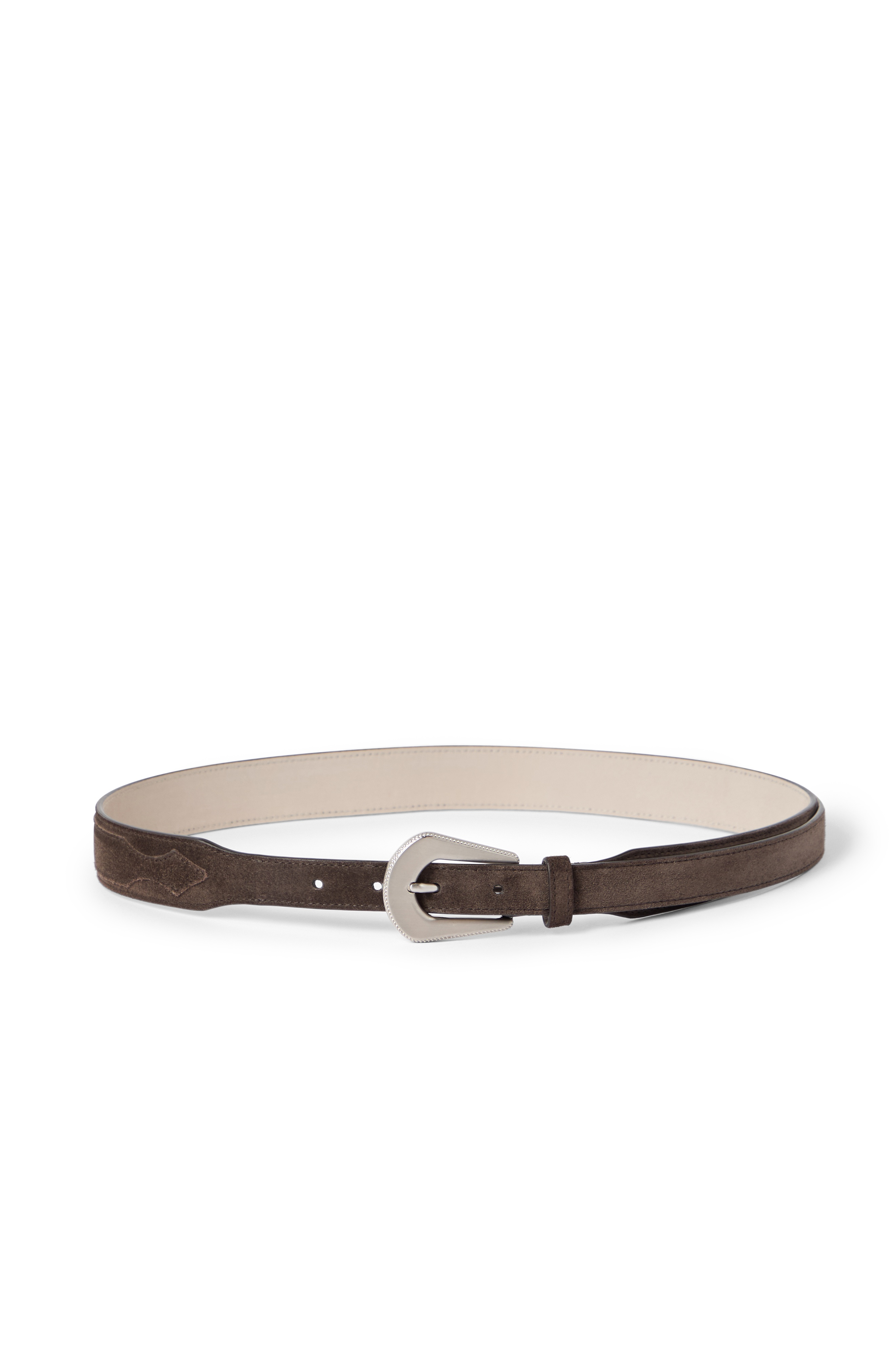 Sueded calfskin displays the characteristic velvety and slightly uneven texture. Belt height approx. 3 cmAll metal parts are Nickel-free