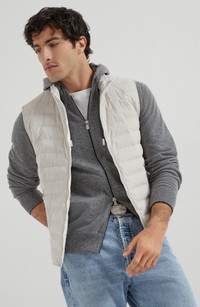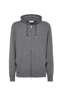 The noble cashmere fiber is characterized by an extreme fineness and also for its precious insulating qualities which guarantee warmth, providing coverage and lightness when worn. Two-way zip closureAdjustable drawstring hoodPatch hand pocketsRib knit cuffs and bottom bandPlain stitch
