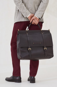 The calfskin leather is crafted with a special technique that defines the surface with a raised, uniform geometric texture reminiscent of a basketball. Handmade finishing creates light and dark effects that enhance the refined appearance of the accessory, which is lined with water-resistant fabric to protect the contents from possible contact with water. Flap closure with adjustable straps Adjustable and detachable shoulder strap Handle Outside zipper pocket Internal document pocket Internal pocket with zip closure All metal parts are Nickel-free Accessory is approx. 48 cm (18.90\") long, 41 cm (16.14\") high, and 21 cm (8.27\") wide