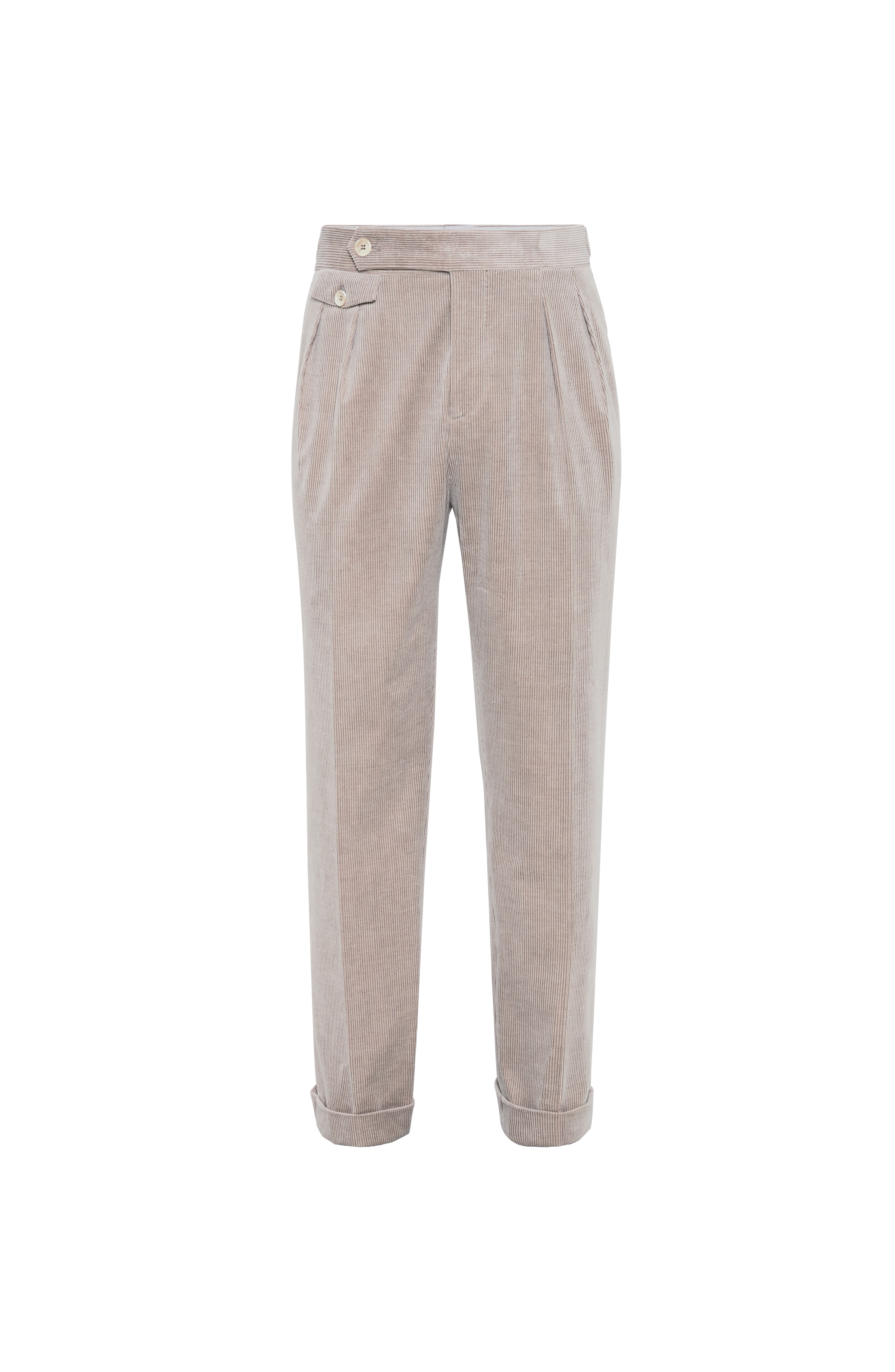 Comfort cotton and cashmere corduroy tailor fit trousers with double pleats and waist tabs