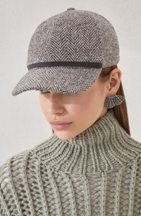Virgin wool tweed baseball cap with shiny band
