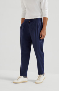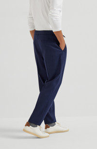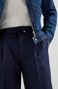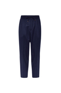 Virgin wool flannel leisure fit trousers with drawstring and double pleats